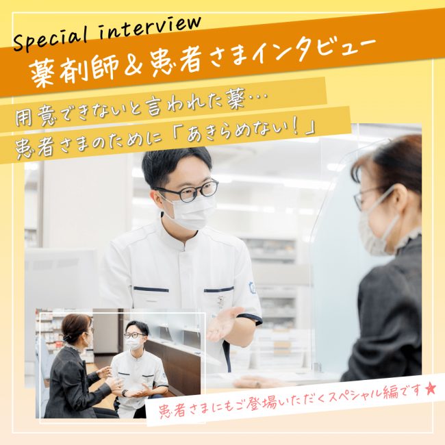 日本調剤の就活最新情報を掲載! 社員インタビュー記事やイベント情報、就活のポイントなど、薬学生向けに就活に役立つ最新情報を掲載しています! UPDATE 2025.10.31 患者さまのために、あきらめない。用意できないと言われた薬にもチャレンジする。 2025.10.27 小学校で「がん」について授業!~学校薬剤師の取り組み~ 2025.10.27 オーベンネーベンインタビュー【その1】 新人&先輩社員に聞く!店舗でのOJT研修【新人編】 2025.09.01 新人が店舗ツアーにご招待!【服薬指導&患者さま応対編】 新人薬剤師がご案内!店舗ツアー【後編】 週刊!薬剤師ブログ 社員紹介 週刊!薬剤師ブログ 社員紹介 #高度薬学管理#配属後のフォロー#資料請求#調剤過誤防止#認定取得強化チーム#社外ジョブチャレンジ制度#服薬指導#新入社員研修#新入社員#新人集合研修#新人薬剤師#新人研修#新人教育#教育制度#懇親会 週刊!薬剤師ブログ MORE 患者さまのために、あきらめない。用意できないと言われた薬にもチャレンジする。 今回は、患者さまから当社へお褒めの言葉をいただいた事例を紹介します。実際に患者さまに当社店舗へお越しいただき、対応した薬剤師と一緒にお話をお伺いする、スペシャル編です★ ◆左:Uさん(日本調剤 薬剤師) ●右:Fさま(患者さま) ・ ・ ●どこに行っても「薬のご用意は無理です」と言われた。 Fさま「病院で処方してもらっ… 社員紹介 MORE キャリアスタイル 医療戦略推進部 A・Mさん 2015年入社 > 店舗薬剤師>社外ジョブチャレンジ制度>医療戦略推進部 【医療戦略推進部の仕事】 病院や他の医療機関等との協働を通じて幅広く医療に貢献する取り組みを推進する部署です。病院で勤務する社外ジョブチャレンジ制度の運用等を担っています。 病院で勤務する「社外ジョブチャレンジ制度」を支える仕事。 医療戦略…